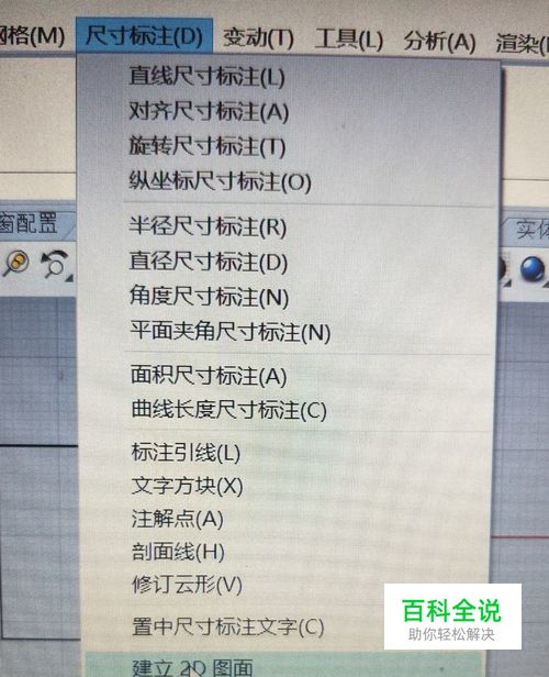 如下图所示,点击“尺寸标注”后弹出下图所示窗口,找到我在下图中箭头所在的“建立2D图面”,左键单击。