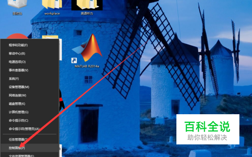 首先鼠标移动到开始,点击右键,打开控制面板
