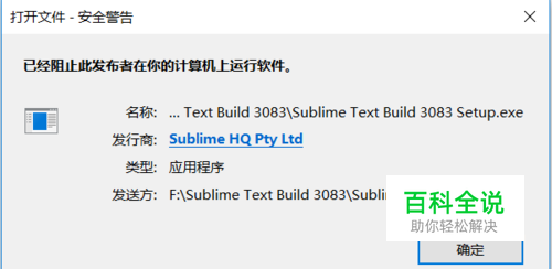 刚才在安装sublime的时候提示已经阻止此发布者在你的计算机上运行软件,现将解决方法作为发布出来