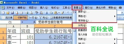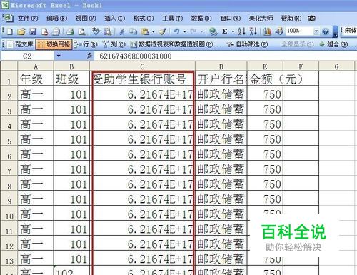 如下表:“受助学生银行卡号”这列是数值格式:默认右对齐,单元格左上角没有绿色三角星。