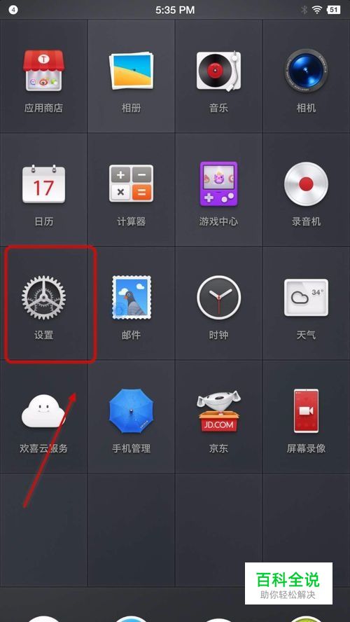 打开解锁锤子手机,滑动桌面找到锤子手机的设置选项并进入到设置列表中。