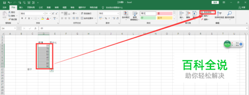 选中数据,点击自动求和按钮,如图所示