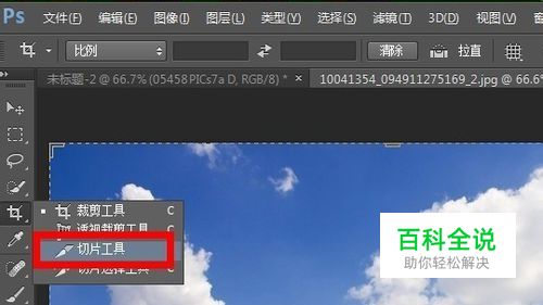 右键工具栏的裁剪工具,选择 切片工具~