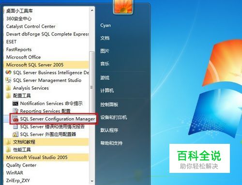 查看数据库端口号:开始菜单--程序--Microsoft SQL Server 2005--配置工具。打开SQL Server Configuration Manager