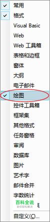 第一步、右键单击“菜单栏”,在弹出的选项列表中将“绘图”钩选;