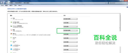 在图标的右边,有个倒三角,点击一下,在弹出信息中,选择【显示图标和通知】,然后点击确定,再次点击确定。