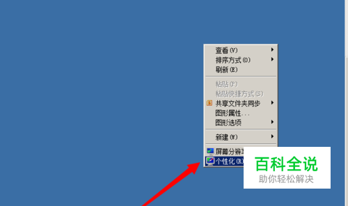 右键点击电脑桌面空白区域,在弹出菜单栏选择 【个性化】选项