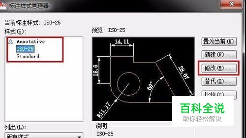 选择你需要修改的标注样式,或者新建也行,我这里选择修改 修改这里的文字高度到你需要的高度你就可以看到文字了,当然这里还有很多其他样式可以修改。
