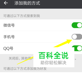 添加我的方式之后,下面有一个手机号的选项,这里如果是关闭状态的话点击打开即可。