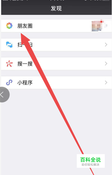 打开微信,点击底部的发现按钮,然后在进一步打开的页面中点击第一个选项“朋友圈”,进入自己的朋友圈页面。
