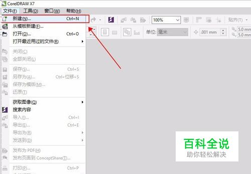 运行coreldraw x7,选择菜单,文件=>新建...,或者直接快捷键ctrl+n。