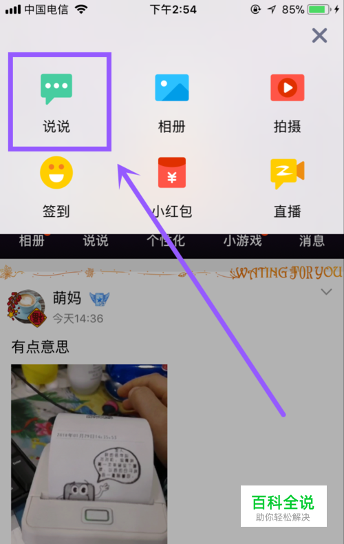 打开空间,点击【说说】,和往常发表说说的步骤是一样的。