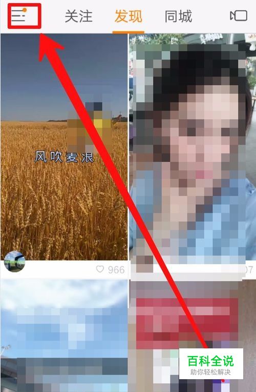 快手账号登录了之后,在首页 点击左上角的菜单小图标。如图所示
