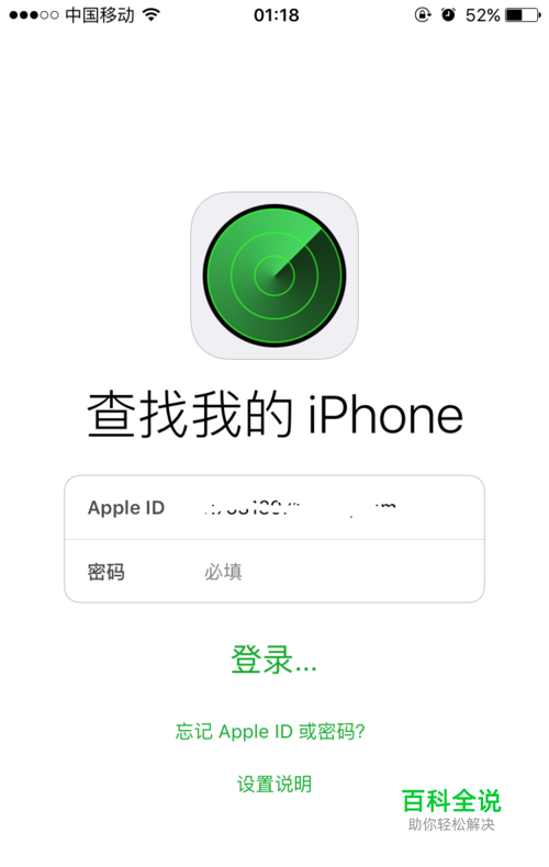 打开查找我的iphone,会让我们输入APPstore账号和密码,我们直接输入丢失的手机上的账号和密码。