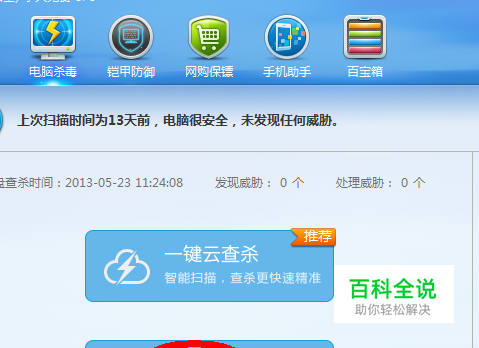 立刻全盘杀毒。 当电脑有病毒时,是会造成浏览器启动缓慢。这时打开主流的杀毒软件。进行全盘扫描杀毒。如下图。