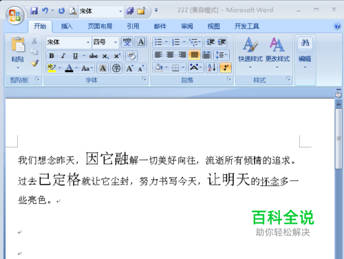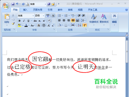 文档中有三处与其他文本不一样格式的文字,现在需要快速将这三处筛选出来(如图);
