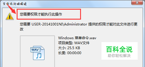 然后,刚才的提示你也看到了,它是说你需要User-20141001NI\Administration对这个文件有删除权限才能对这个文件进行删除操作。