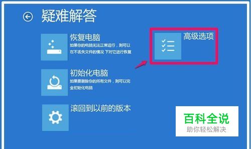 点击疑难解答后,进入疑难解答界面,我们点击: 高级选项;