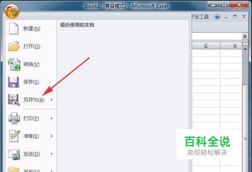 单击工作簿窗口左上角的“office”按钮,在下拉菜单中单击“另存为”命令,打开“另存为”对话框。