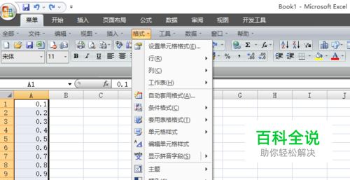 然后,点击工具栏上的“格式”选项,在下拉表上我们看到有设置单元格格式