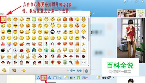 我们找一个自己想要存为图片的QQ表情。 我这里就点击第一个表情。