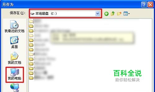 这时会弹出“另存为”的对话框 左边选择“我的电脑” 右边 鼠标左键双击“C盘”,从而进入C盘 文件名改为“QQ表情1", 最后点“保存” 见下图