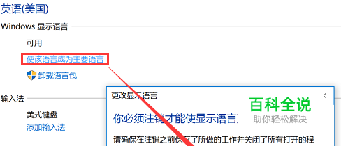 下载安装完成后,点击“使改语言成为主要语言”系统提示注销,注销后,系统界面将变更