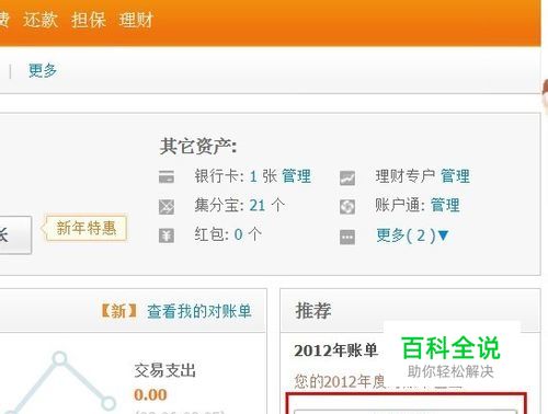 登录自己的支付宝页面,在右侧,有个年度对账单,点击下面的“敬请查阅”