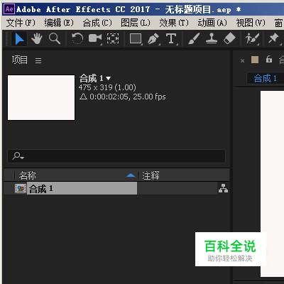 启动AE软件,进入到主操作界面。并新建合成。