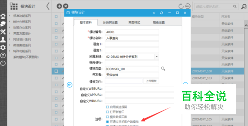 创建系统菜单。进入“开发后台-模块设计”模块,设置你要开发的系统的菜单结构。同时选择“可以通过手机客户端操作”。这样,此模块可以运行在手机上了。