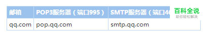 QQ邮箱 POP3 和 SMTP 服务器地址设置如下: