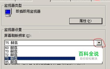 切换到“监视器”选项卡,按图设置即可! 知识扩展: 800x600 60HZ 1024x768 70---85HZ,推荐使用75HZ 1280x1027 75---85HZ 1440x900 选择合适您的计算机的分辨率和刷新频率,能很好的保护阁下的眼睛!