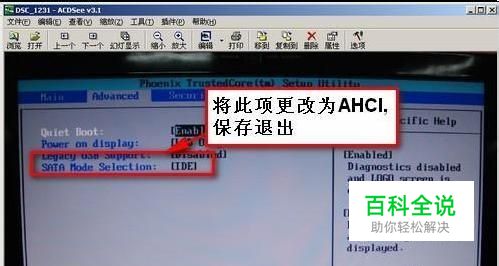 二,重启,进入bios,将IDE模式改为ahci,或者有的机子是SATA MODE---enable