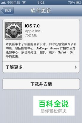iOS 7系统正式版终于放出,苹果公司号称这是iOS系统发布以来最大的改变,相比iOS 6,它在界面上重新设计,并增添了多项新功能。 其实在在测试版发布之初,新浪手机就对其进行了评测,不了解的网友可以先看一下。 言归正转,如何才能升级到iOS 7呢? 如果你是一个入门级用户,来看下我们的简单教程。 首先明确下什么设备能升级:iOS 7支持iPhone 4及之后的iPhone,iPad 2及之后的iPad,iPad mini还有iPod touch 5.如果你手头的设备比这些还老,就不能升到iOS 7了。 理论上升级是不会弄丢任何资料的,但为了以防万一,我们还是建议备份一下你的iPhone. 1.在手机上直接升级 今早苹果已经开始推送iOS 7的OTA升级,如果你是iOS 6系统正式版用户,现在在设置上已经可以看到更新标识。点开“设置”--“通用”--“软件更新”,直接点升级就好了,是不是很简单? OTA升级 网速理想的话,下载加升级会在20分钟内搞定,但是……目前可能升级的人比较多,服务器压力巨大,所以下载慢或中途甚至下载失败都有可能。亲,这就像昨晚北京的交通,避过高峰就好啦。已经升级好的iOS 7系统已经升级好的iOS 7系统 另外,已经越狱的用户切勿直接用此种方式升级,你需要先下个iOS 6 6.1.4的正版,之后打开iTunes,按住shift后SHIFT 恢复选择下载好的固件,可恢复越狱前状态,但手机里所有东西会丢失,务必先备份。 2.在电脑上升级 将手机连接好电脑,PC还是Mac无所谓,打开iTunes点“检查更新”,会看到这个界面: iTunes升级 此时点击更新,它会首先要求升级iTunes,因为iOS 7要求iTunes 11.1才能连接。 升级之后再回来,iTunes会在电脑上下载iOS 7固件,之后升级手机,仍然记得先备份哦亲。