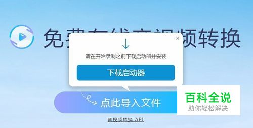 进入Apowersoft免费在线音视频转换的页面后,点击 点此导入文件。如果你是第一次使用,根据提示框指示, 下载启动器。这个步骤只需要在第一次使用的时候下载安装,以后使用时就不会出现了。