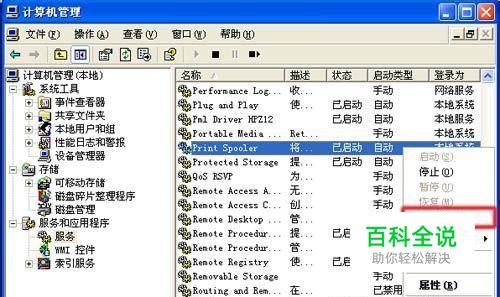 出现这个问题时,首先请检查相关的服务有没有启动;在开始--运行--CMD--SERVICES.MSC启动服务组件;或者在桌面选中“我的电脑”,鼠标右键选择“管理”;在“管理”窗口中,选取“服务和应用程序”扩展项目下的“服务”选项,在右侧出现系统服务列表中找到“Print
