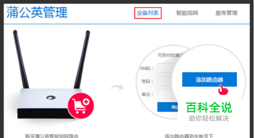 点击页面左上方“添加 路由器”,输入路由器背面的SN码和密码,把需要组网的蒲公英都添加到注册的账号下进行统一管理。