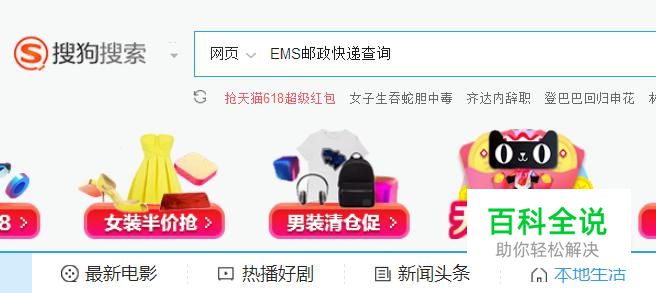 首先在搜狗浏览器中输入EMS邮政快递查询并点击回车键,如下图所示。