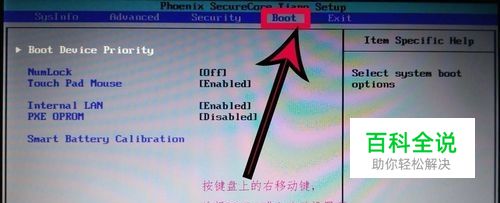 然后使用键盘上的左右键进行光标的移动,将光标移动到Boot这一栏