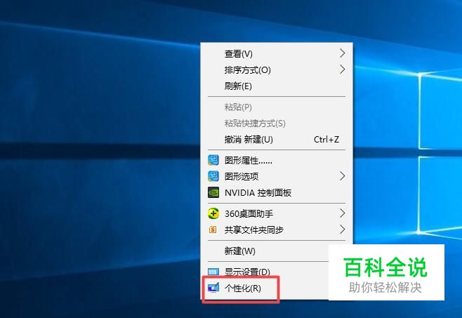 首先,我们在电脑桌面的空白处右击,弹出的界面,我们点击个性化;
