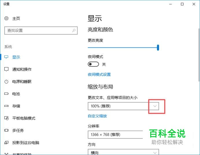 弹出的界面,我们点击更改文本、应用等项目的大小边上的下拉箭头;