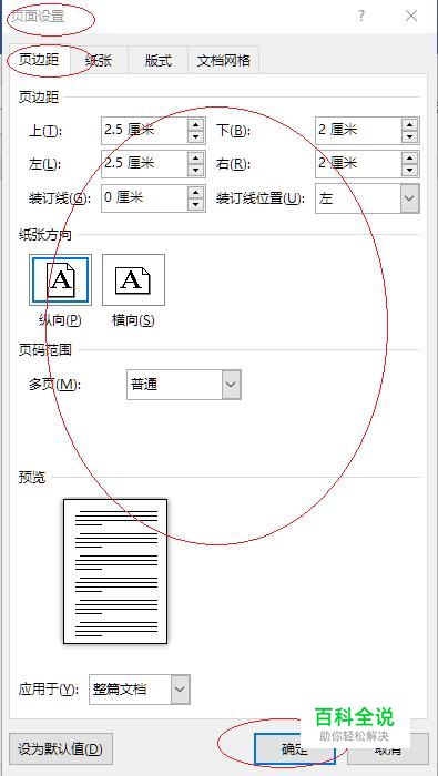 如图所示,弹出"页面设置"对话框。选择"页边距"标签设置页边距、纸张方向,选择"纸张"标签设置纸张大小。