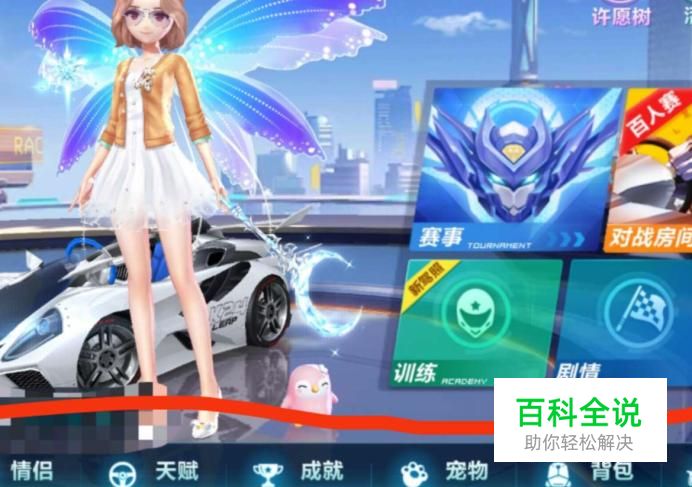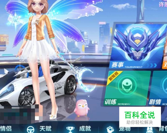我们可以看到在QQ飞车界面底端有“情侣”,“天赋”,“成就”等新功能