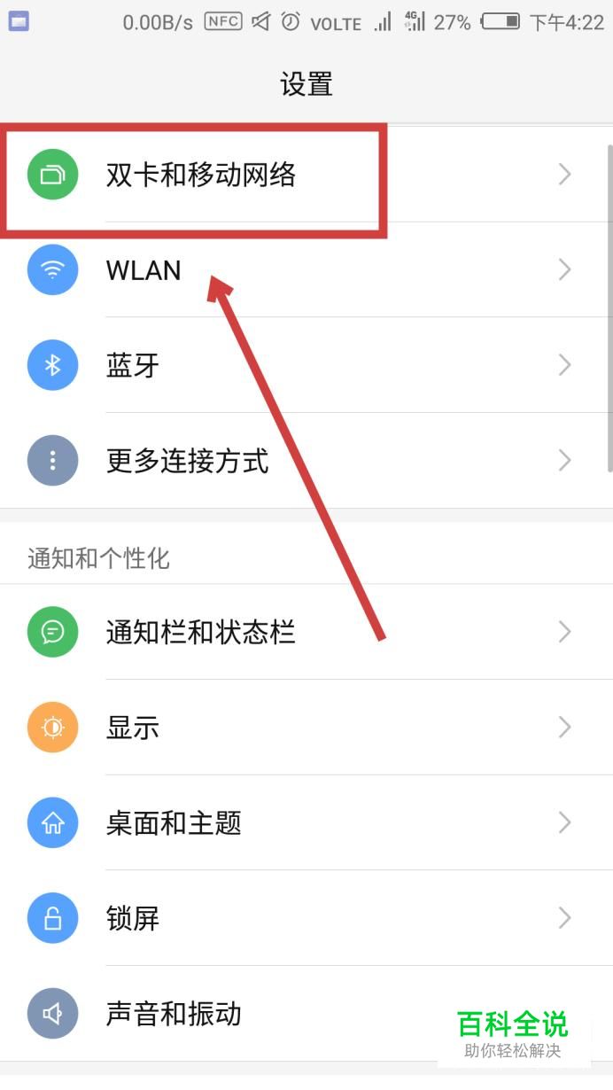 打开“设置”,在最上方找到“双卡和移动网络”,点击进入。
