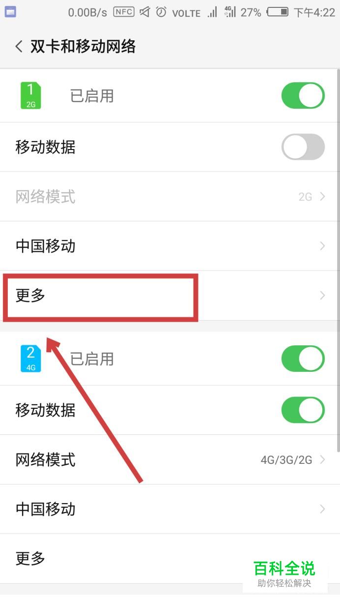 然后选择需要设置的SIM卡,点击“更多”,如图所示。
