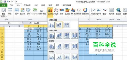 框选所有数据,在菜单中找到【插入】-【柱形图】-【二维柱形图】-【堆积柱形图】