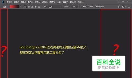 photoshop CC2018左右两边的工具栏全都不见了,那应该怎么恢复常用的工具栏呢?