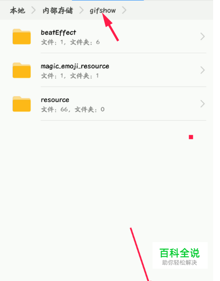 然后找到快手在手机上的本地文件夹,一般在手机的/gifshow目录下,然后选择粘贴,如下图所示。