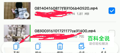 首先在手机上找到爱奇艺下载的视频,长按下载的视频,会出现复制按钮,如下图所示,先把视频复制一下,如果不需要备份原来的视频,可以选择移动。