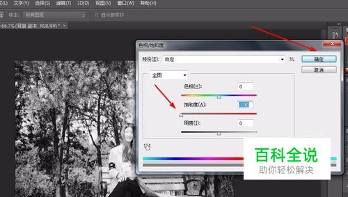 然后我们按住ctrl+U键将图层的饱和度降到最低